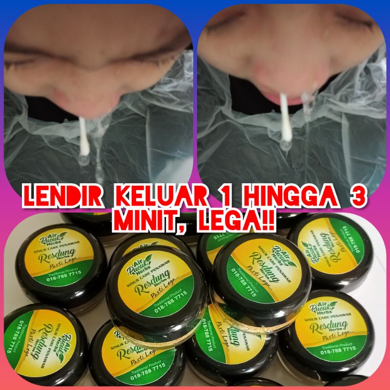 Jangan abaikan masalah resdung sebab ada komplikasi pada resdung akut seperti asma berulang terjadinya resdung kronik atau jangka panjang. Campurkan air perasan limau denga daun pandan. Diperbuat dengan 13 jenis herba semula jadi.
